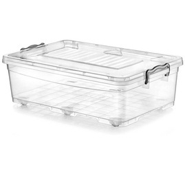 Rechteckig Behälter, Aufbewahrungsbox, Transparentbox, Kunststoffbox, Klappbox, Plastikbox – transparent – 40,00 Liter